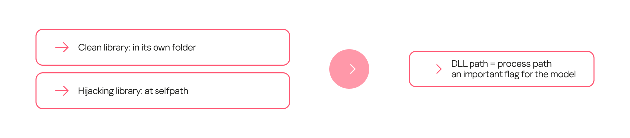 To determine if we could train a model to distinguish between malicious and legitimate library loads, we first needed to define a set of features highly indicative of DLL hijacking. We identified the following key features:
