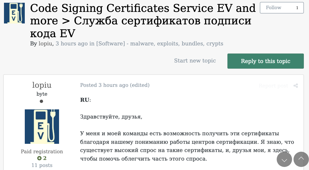 At around the same time in the Summer of 2022, at least two different accounts tied to Star Chat — “RocketAce” and “Lopiu” — introduced the group’s services to denizens of the Russian-language cybercrime forum Exploit, including: