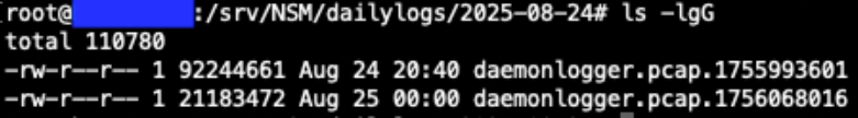 Figure 2: DaemonLogger PCAP files from October 31, 2025.