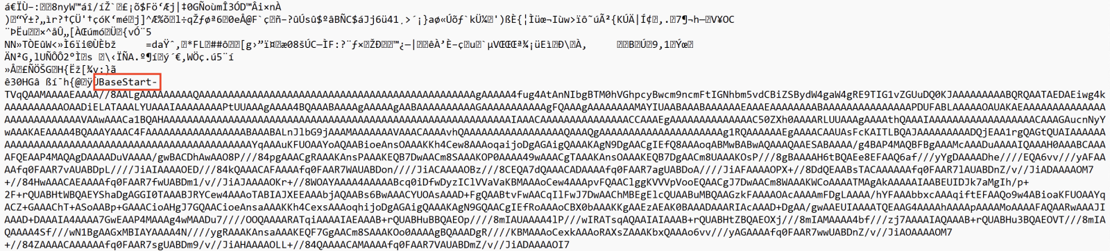 But when some “fun” at the end. The next payload is delimited (and extracted) using the tags “BaseStart-” and “-BaseEnd”: