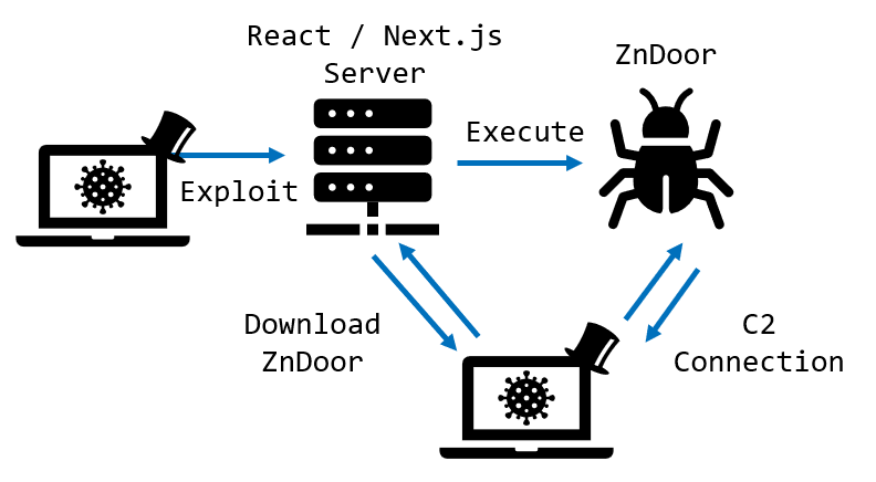 The security vulnerability known as React2Shell is being exploited by threat actors to deliver malware families like KSwapDoor and ZnDoor, according to findings from Palo Alto Networks Unit 42 and NTT Security.