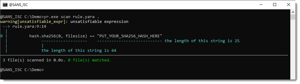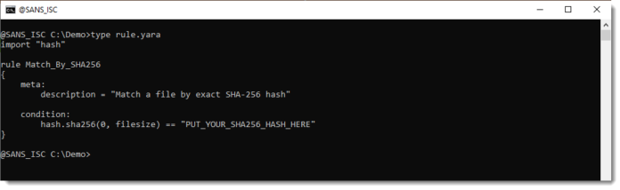 When you write a YARA rule to match a cryptographic hash (either the full file content or a part of it), what’s actually going on are string comparisons: