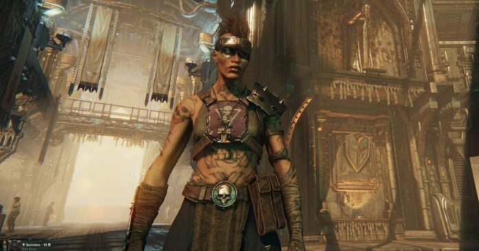 It’s a simple assignment, in other words. But it’s also enjoyably pacey, and the trench setting – well-trodden ground for war games, yet a refreshing change from Darktide’s usual metal corridors – does look strangely beautiful in places. Light rays cut through the dust of a bombed outpost, while the mountainous architecture of the hive city looms over the battlefield. It’d be lovely if it weren’t so horrible.