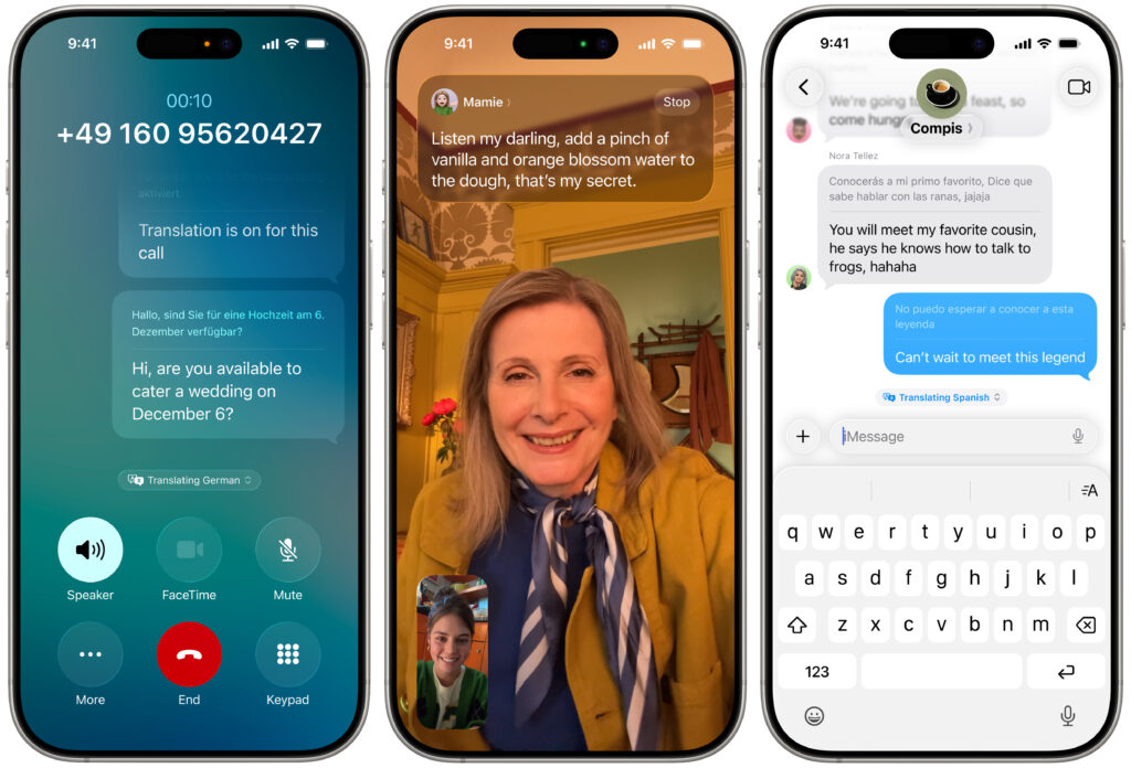 Perhaps the most significant additional feature driven by Apple Intelligence in the new operating systems is Live Translation. It’s integrated into the Phone, FaceTime, and Messages apps. In the Phone app, you get spoken translations between supported languages. In FaceTime, you see the other person’s translated text as a caption, and Messages translates their text. Live Translations may prove to be a lifesaver on your next international trip.