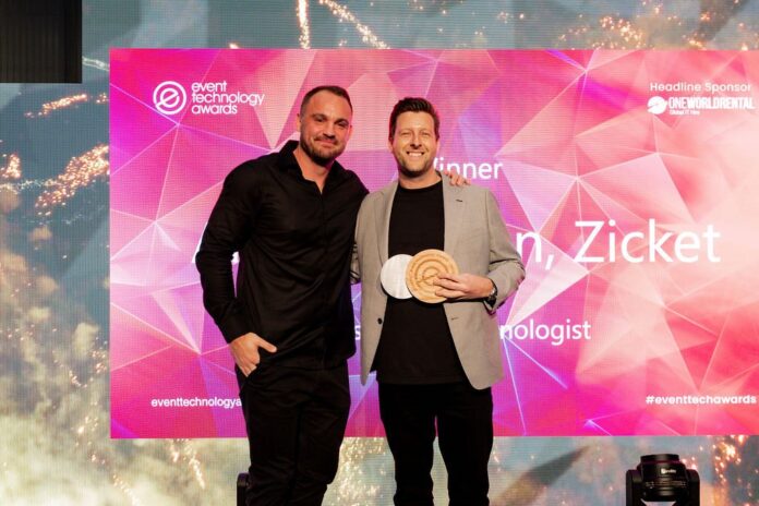 Aidan Pawson, Managing Director of Zicket, was named Best Event Technologist at the Event Technology Awards 2025 in London.